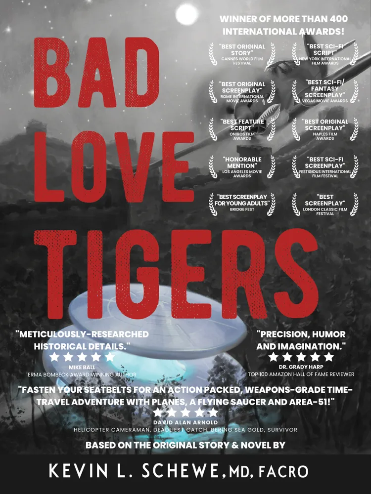 Bad Love Tigers is about a misfit group of young adventurers, known as the Bad Love Gang, who come of age as they use a time-travel machine called the White Hole Project to travel back to the World War II era, meet with President Roosevelt and embark on a perilous secret mission to protect an alien spaceship and defeat the Japanese in combat. Keeping America’s most important and deepest national secret safe at Area-51 hinges on the success of their quest.